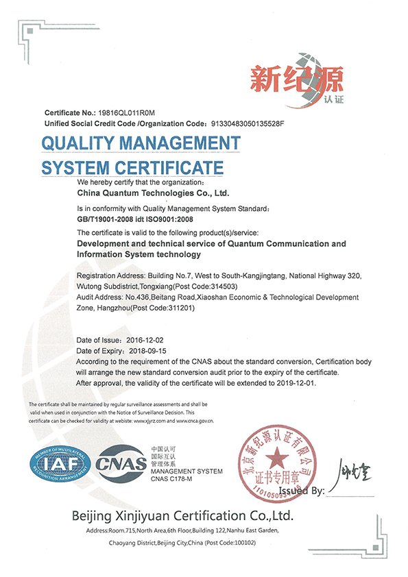 榮獲資質證書